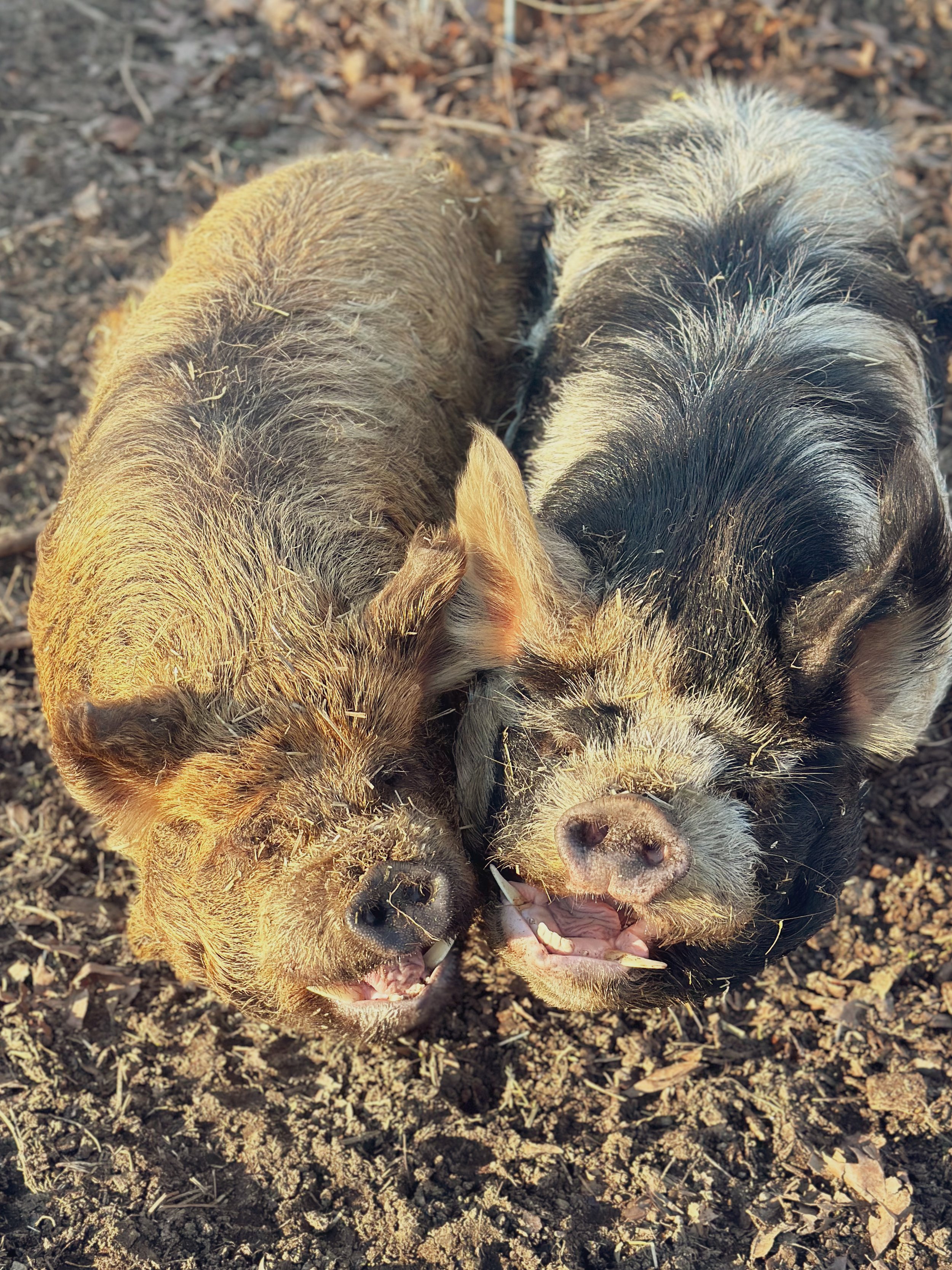 Our Kunekune pigs are a gentle heritage breed known for their calm temperament and love of grazing. Raised outdoors, they spend their days exploring pasture, rooting naturally, and living at an unhurried pace that supports both their wellbeing and the land they live on. As part of our working farm, they play an important role in land stewardship and soil health while also bringing a sense of curiosity and charm to daily life at Higganum Hills Farm.